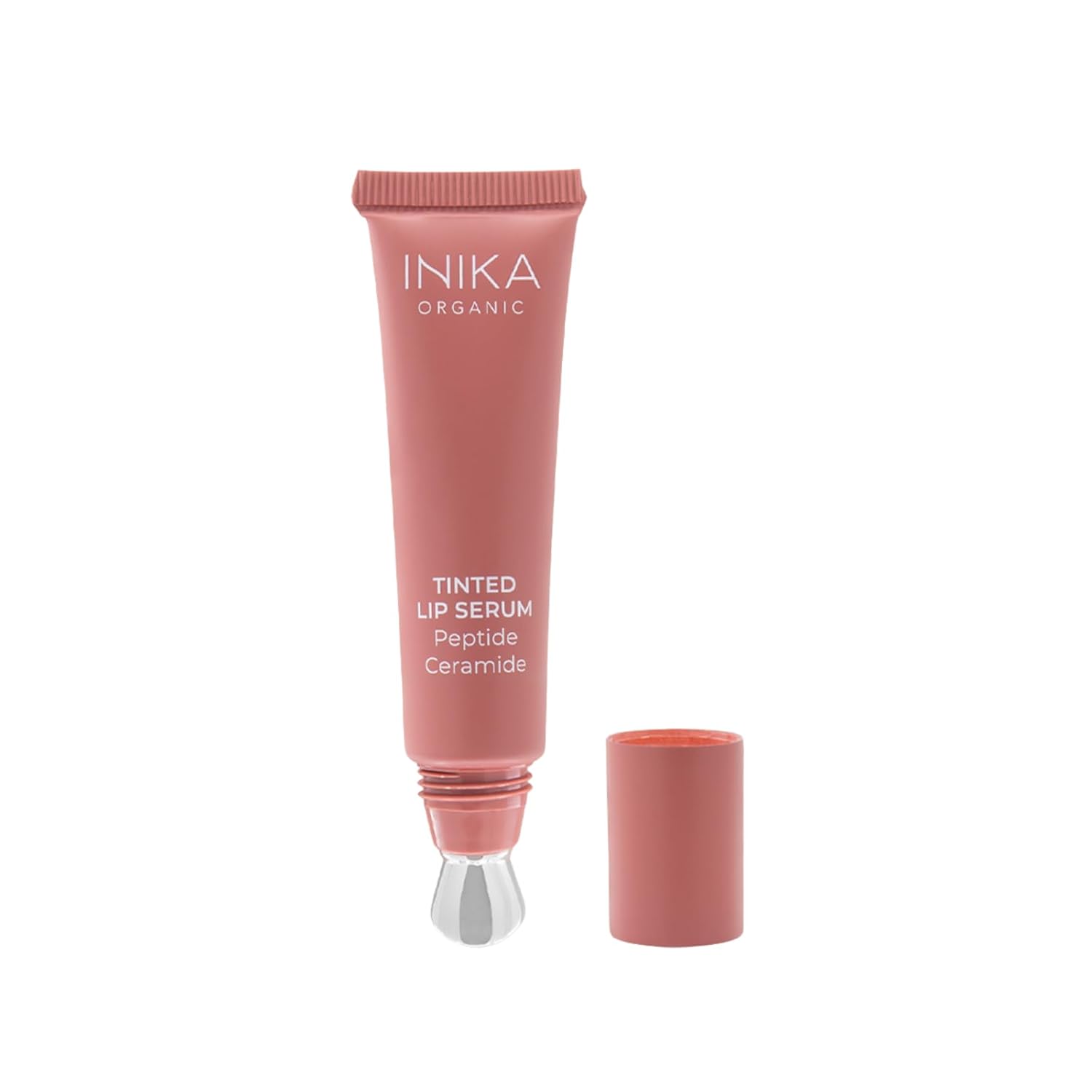 INIKA Organic Tinted Lip Serum | Ceramide + Peptide Infused, Sheer Wash of Color, Plumps, Softens, Smooths, Hydrates + Repairs. Natural & Vegan (Peony)