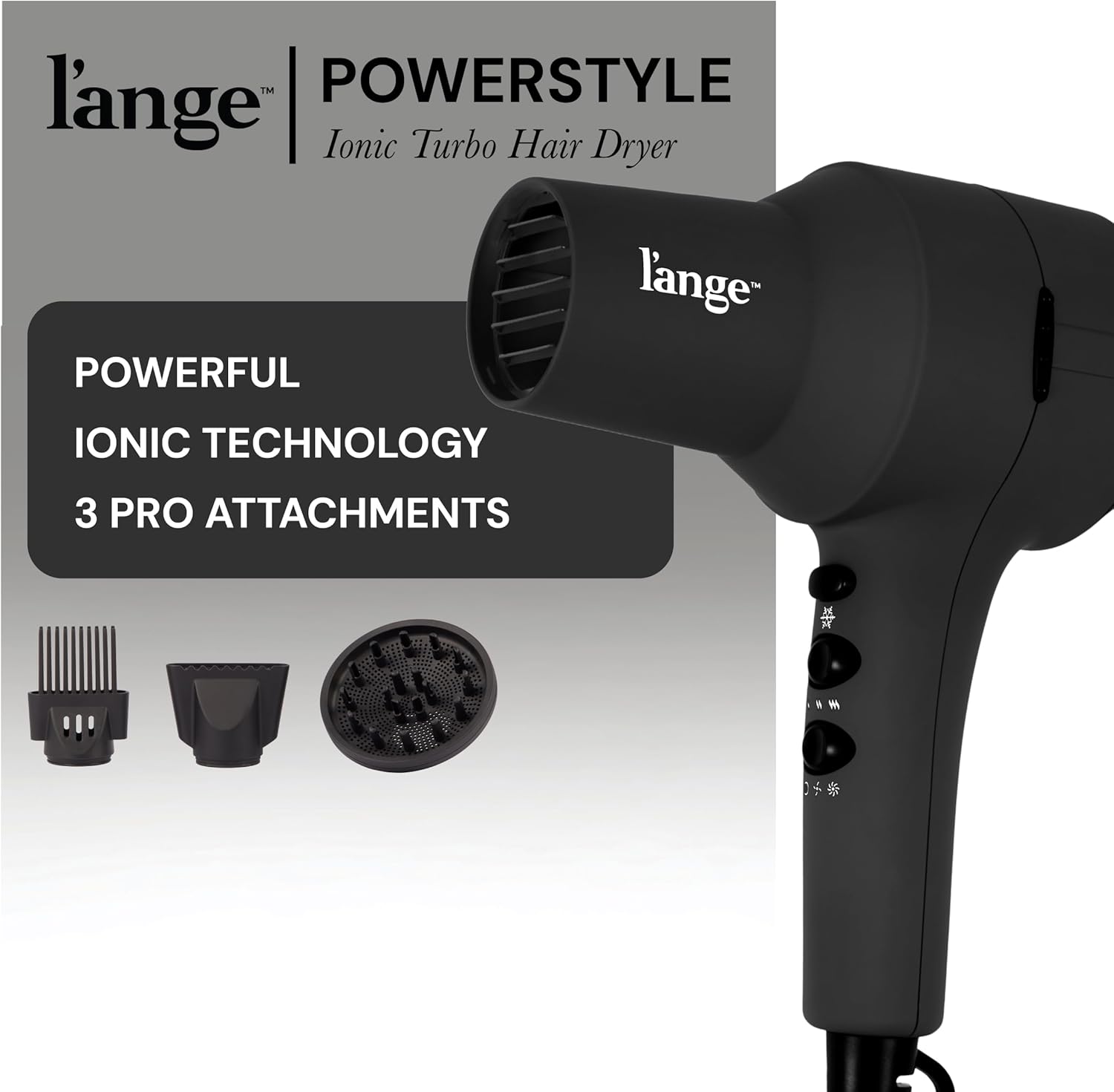 L'ANGE HAIR PowerStyle Ionic Turbo Hair Dryer | 1875W Fast Drying & Precision Styling for Long-Lasting, Frizz-Free Looks | Advanced Ionic Technology Smooths & Shines Hair (Black)