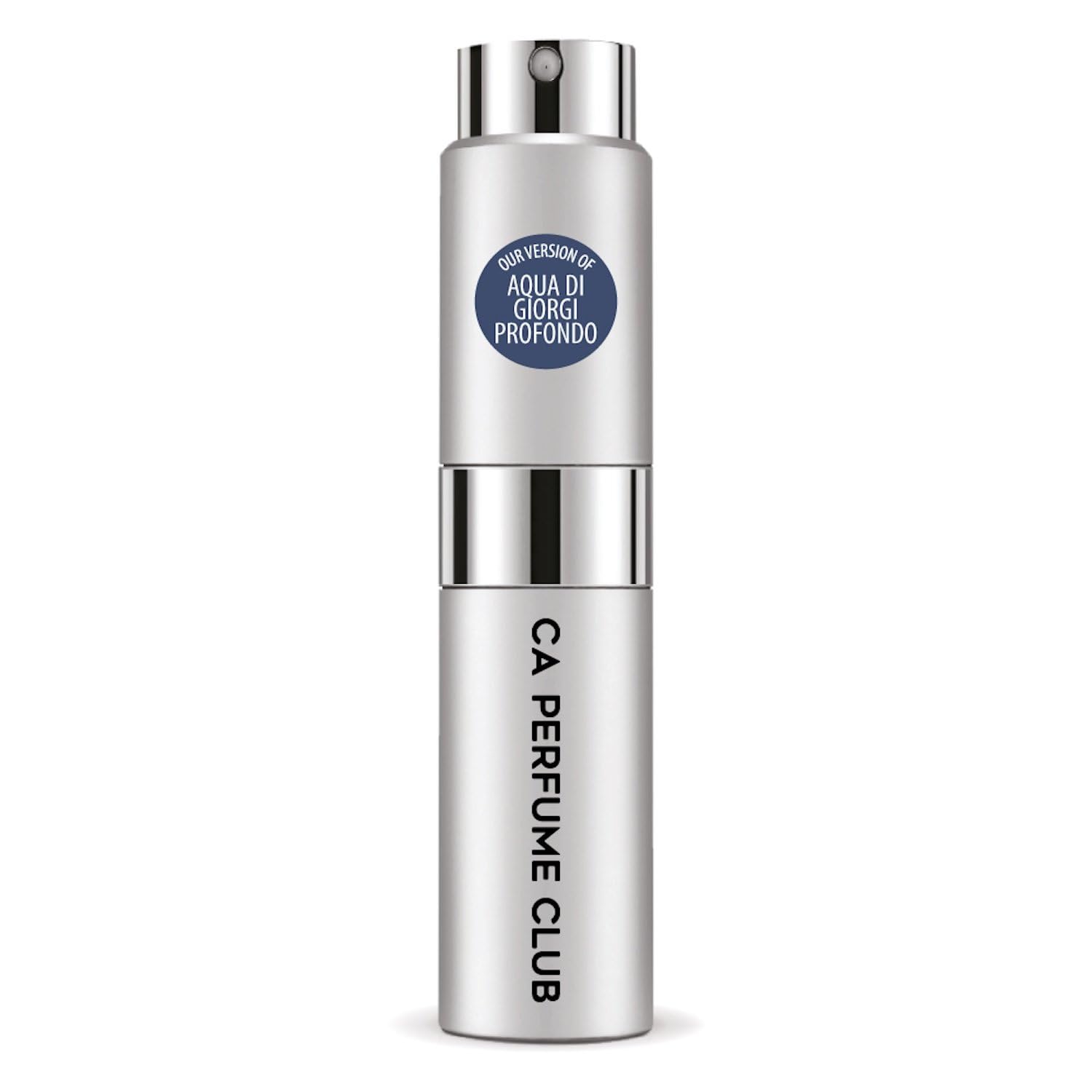 CA Perfume Impression of Aqua Di Giorgi Profondo for Men Aromatic Fougere Scent Long Lasting Cologne for Men Eau De Parfum Travel Size Refillable Atomizer Spray 0.27 Fl Oz 8ml