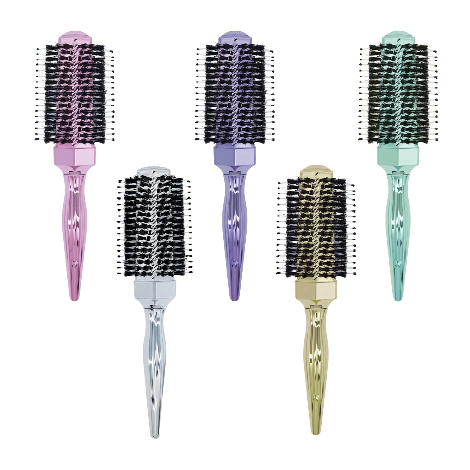 - Round barrel brush bristles made of wild boar hair evenly distribute natural oils, reduce static electricity, and create perfect styles with brilliant shine.