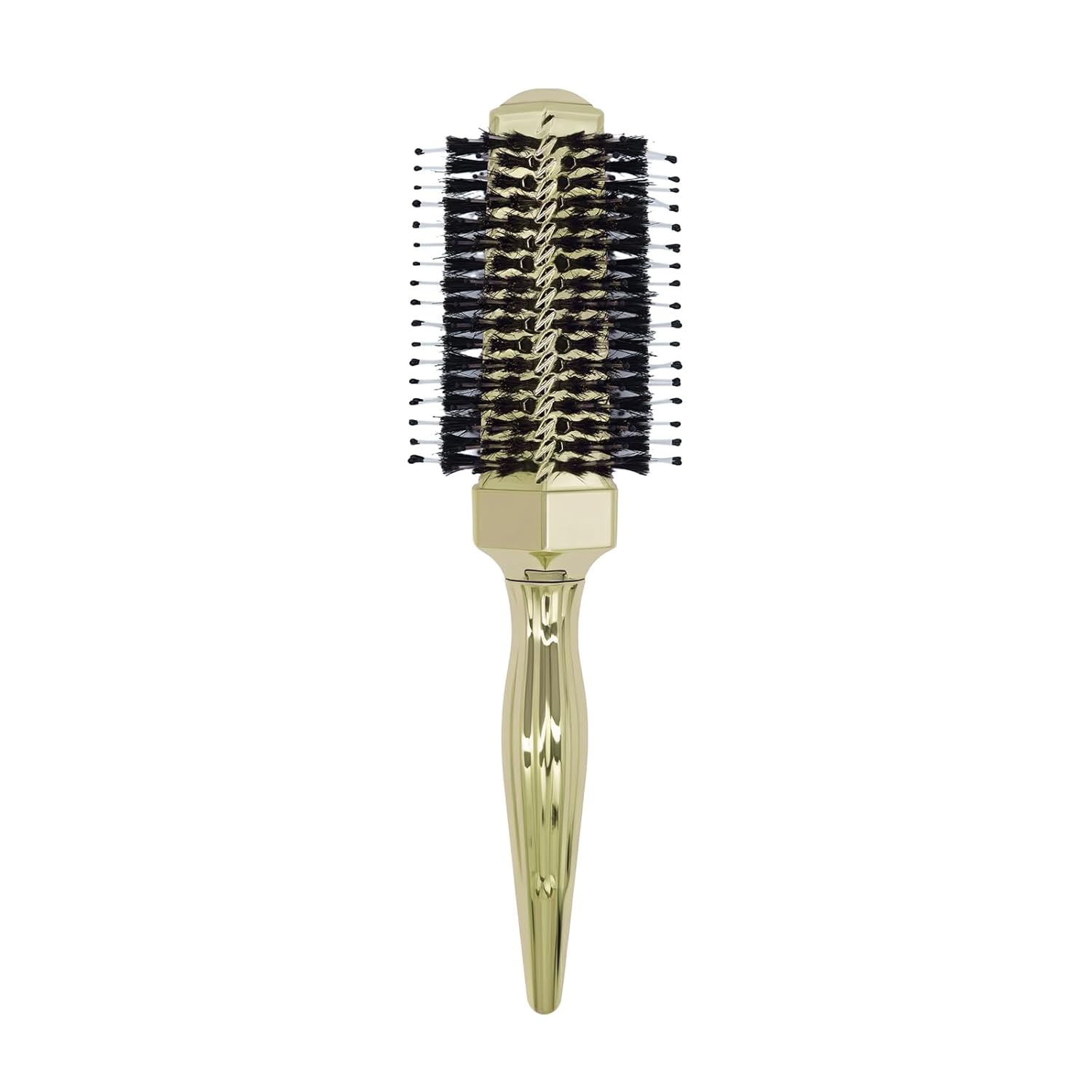 Round Hair Brush with Wild Boar Bristles – Specialized for Blowouts & Styling at Home or Salon, Suitable for All Hair Types.Gold