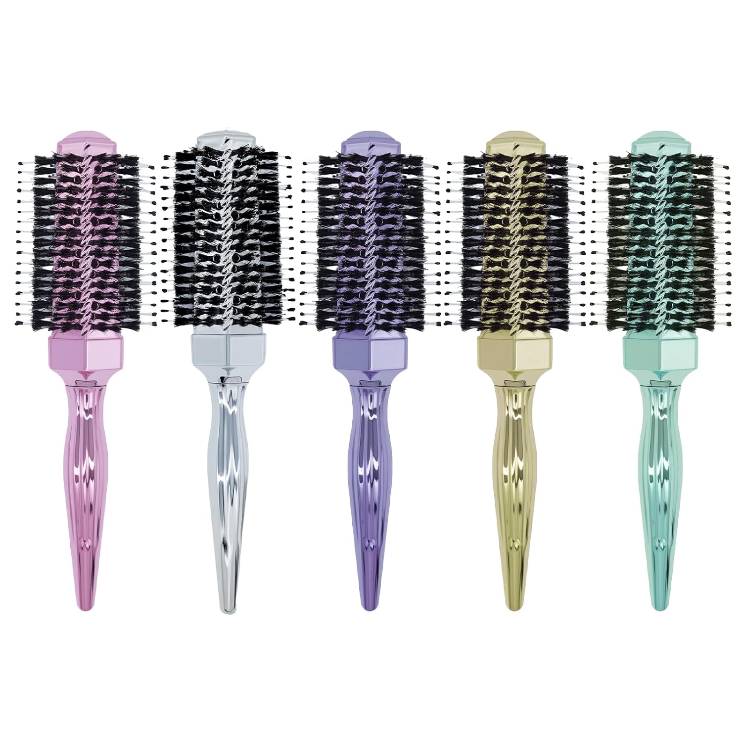 - Round barrel brush bristles made of wild boar hair evenly distribute natural oils, reduce static electricity, and create perfect styles with brilliant shine.