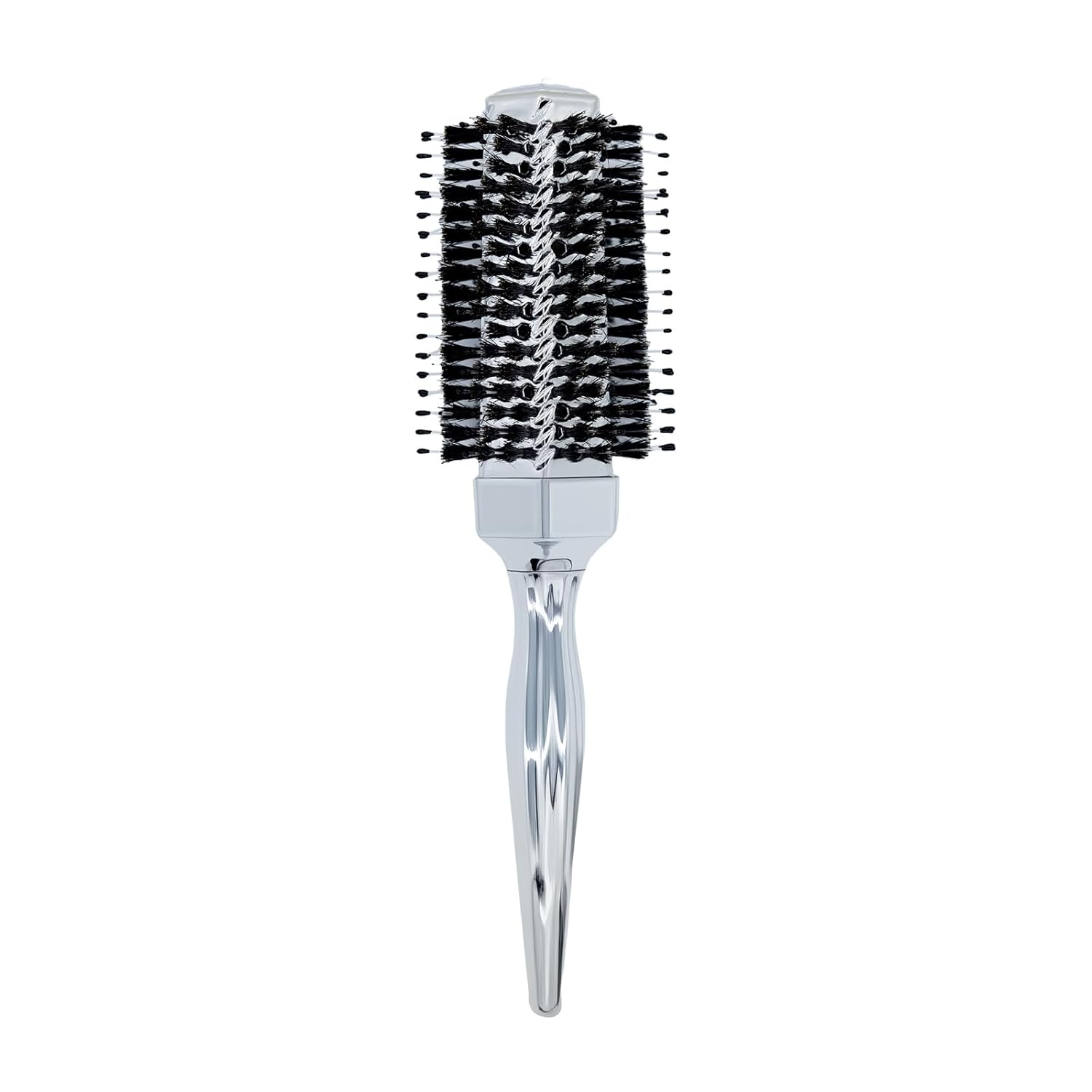 Round Hair Brush with Wild Boar Bristles – Specialized for Blowouts & Styling at Home or Salon, Suitable for All Hair Types.Silver