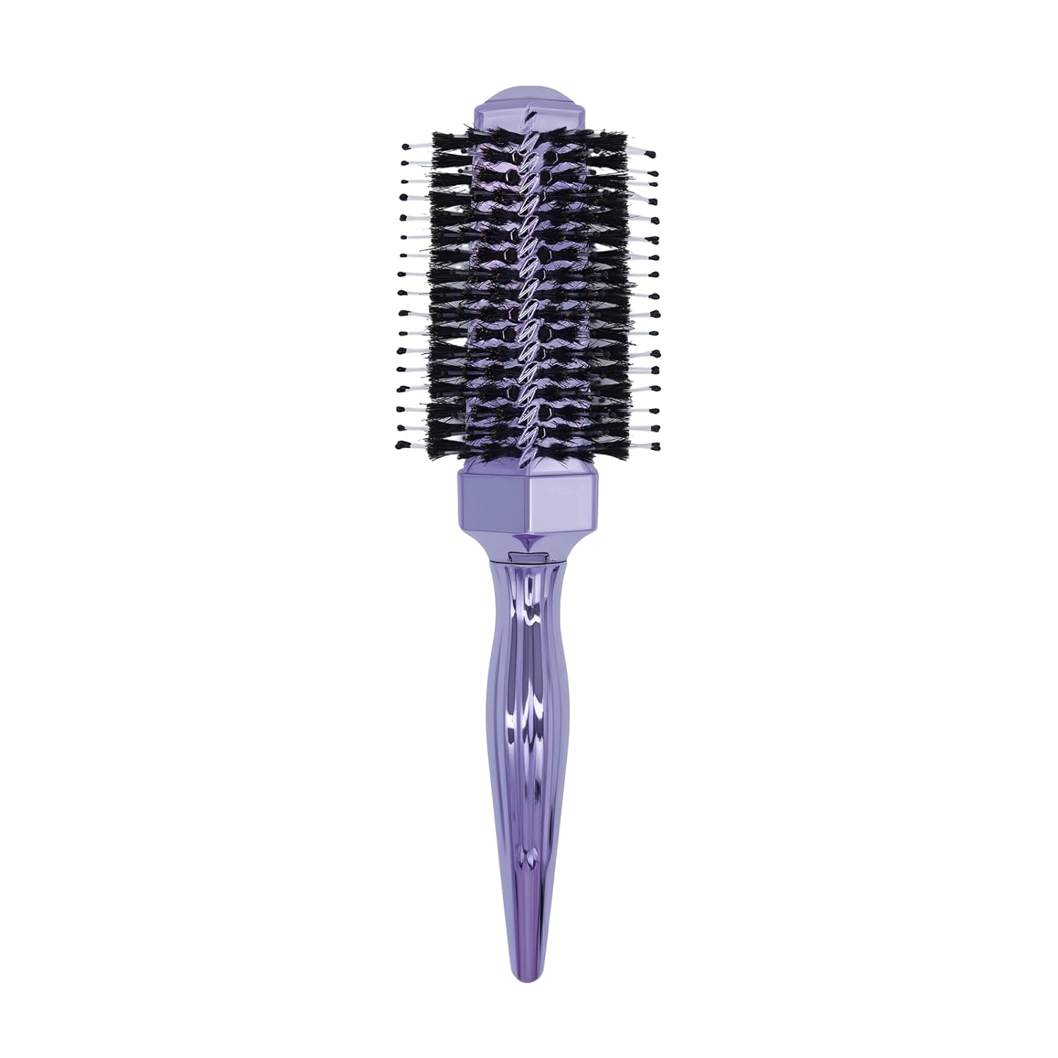 Round Hair Brush with Wild Boar Bristles – Specialized for Blowouts & Styling at Home or Salon, Suitable for All Hair Types.Purple