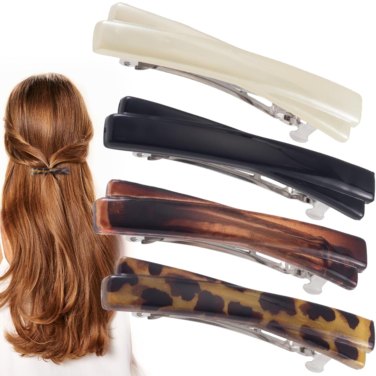 - Package Include: In each package, you'll receive 4pcs French hair barrettes in black, white, amber and leopard color, 1pc per color, measuring 2.56×0.47in/ 6.5× 1.2cm. This sufficient quantity is more than enough to meet your daily hair styling requirements and replacement needs