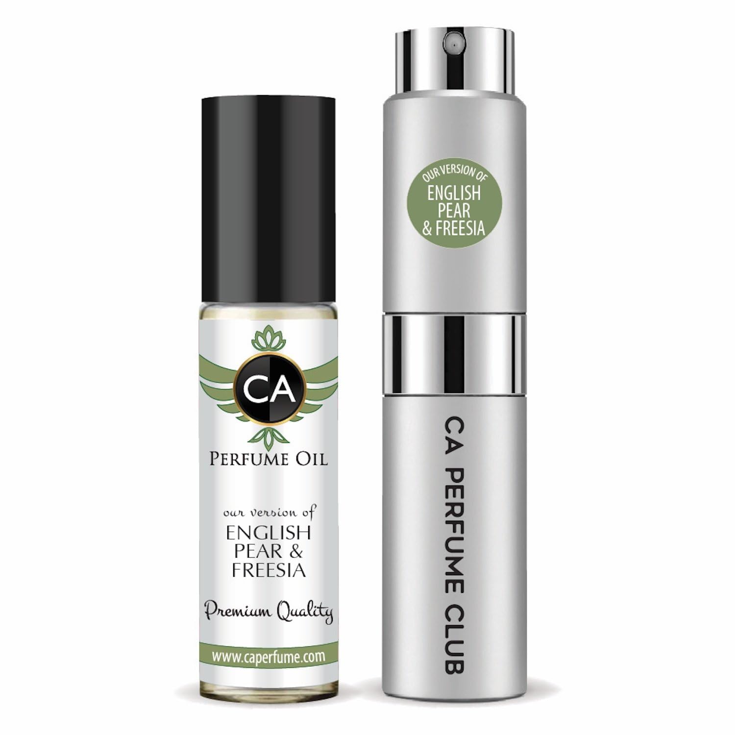 CA Perfume Duo Impression of English Pear & Freesia For Women And Men Perfume Layering Set Long Lasting Travel Size EDP + Body Oil Roll-On Bottle 0.27 Fl Oz+0.33 Fl Oz