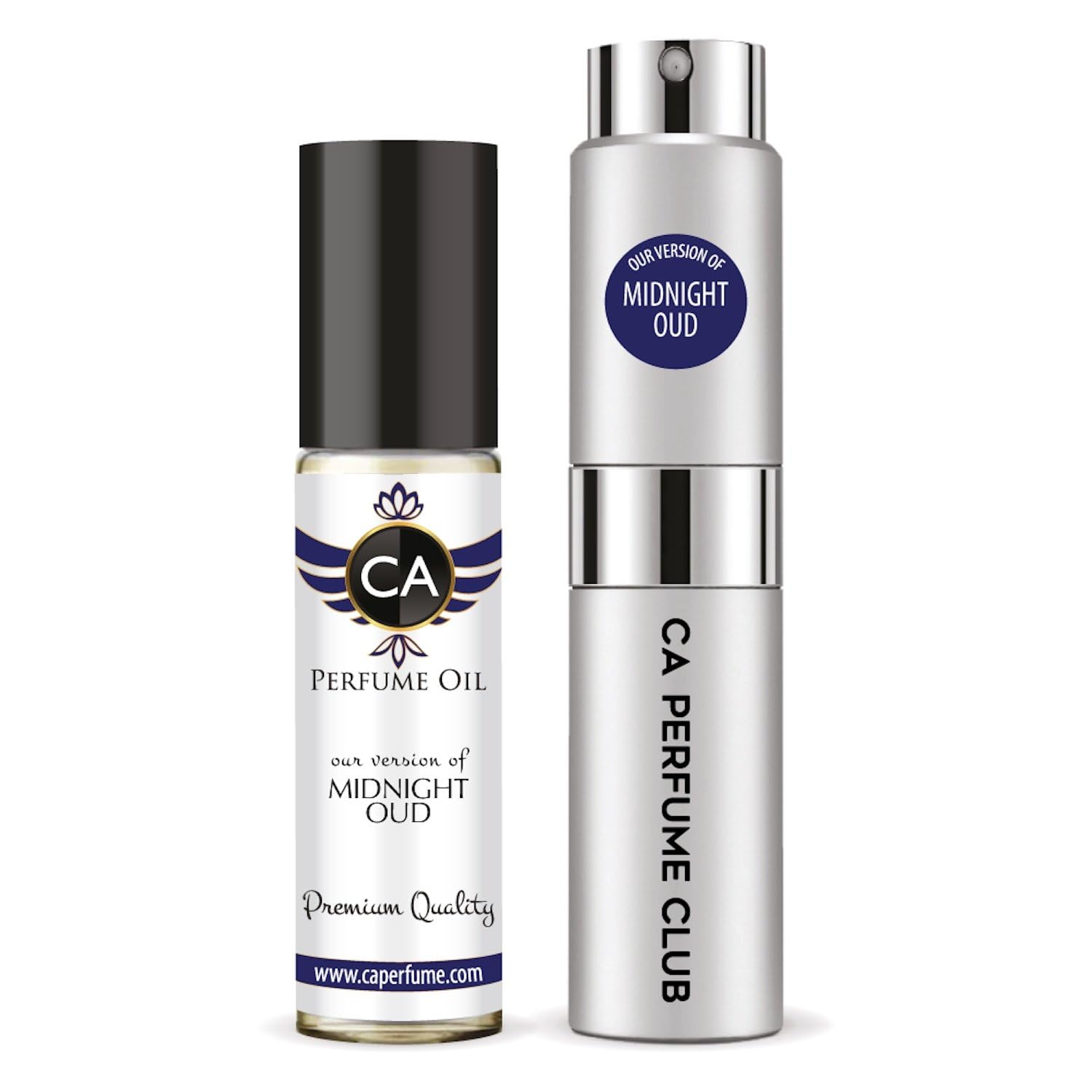 CA Perfume Duo Impression of Midnight Oud For Women And Men Perfume Layering Set Long Lasting Travel Size EDP + Body Oil Roll-On Bottle 0.27 Fl Oz+0.33 Fl Oz