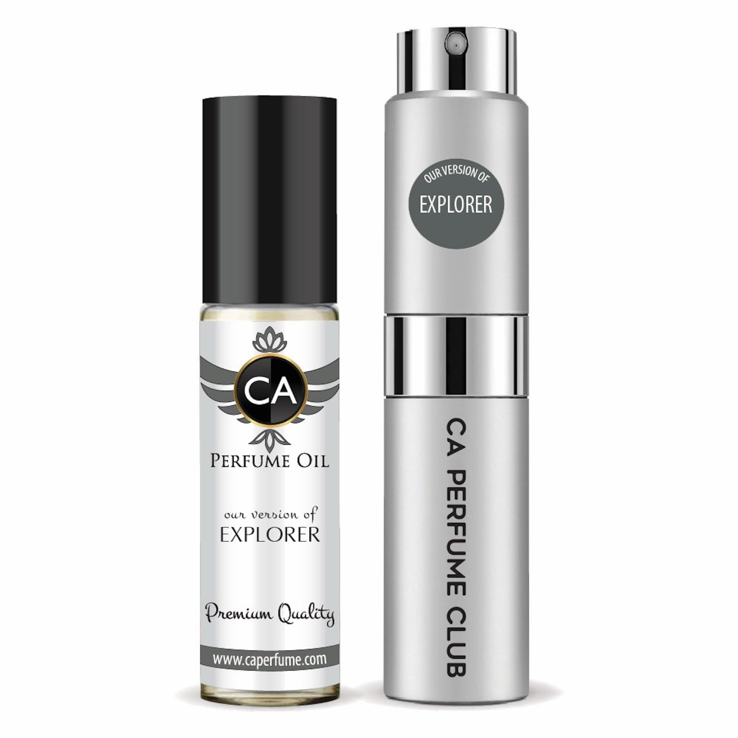 CA Perfume Duo Impression of Explorer For Men Perfume Layering Set Mens Cologne Long Lasting Travel Size EDP + Body Oil Roll-On Bottle 0.27 Fl Oz+0.33 Fl Oz