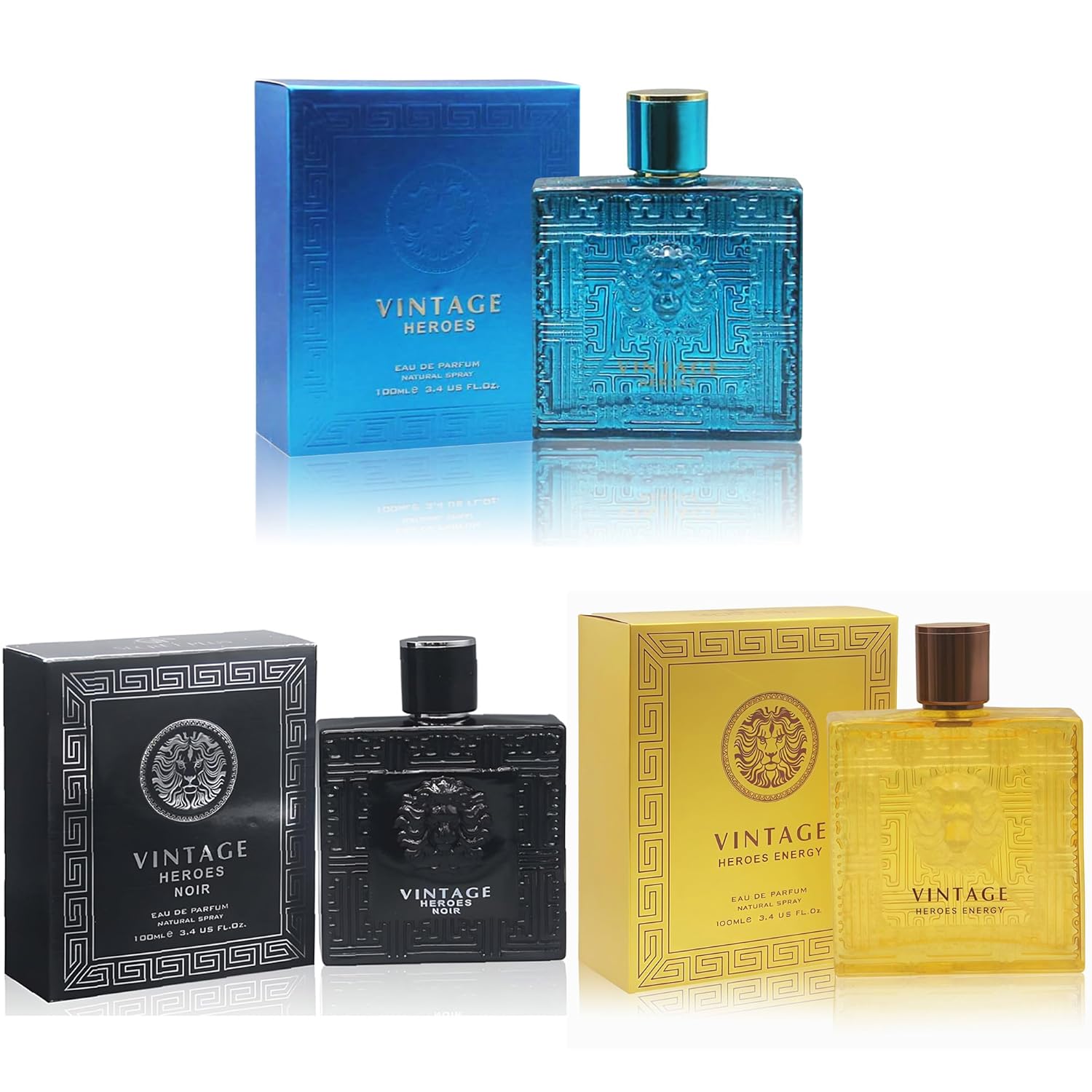 Men Colognes Set 3PCS Vintage Heroes Series Eau De Parfume Spray with Woody Floral & Fruity Scent Perfume Gift Set Day to Night Luxury Long Lasting Fragrances