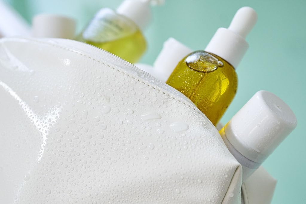 - COULDN'T BE ANY EASIER TO CLEAN: Don't worry, spills, smudges, or makeup stains can be quickly removed; You can easily wipe clean the exterior and interior of this skincare travel bag, thanks to its smooth, waterproof surfaces and easy-to-clean materials