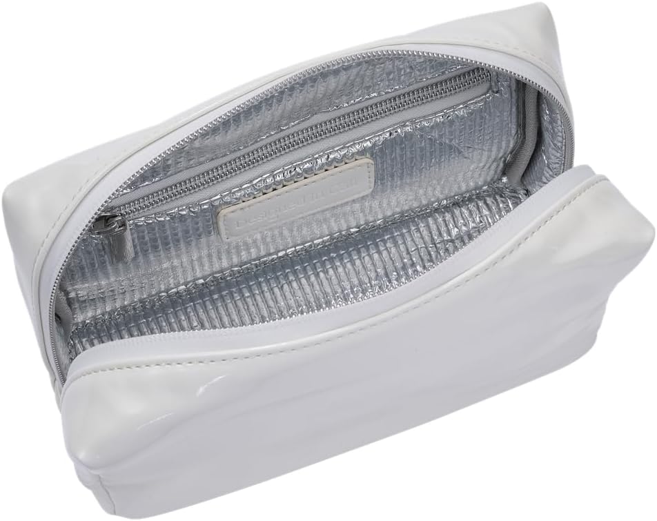 Stay Golden Insulated Waterproof Makeup Bag for Women Heat-Resistant Travel Cosmetic & Toiletry Bag | Luxurious Vegan Leather Portable Makeup Organizer - (Silver Zipper, White)