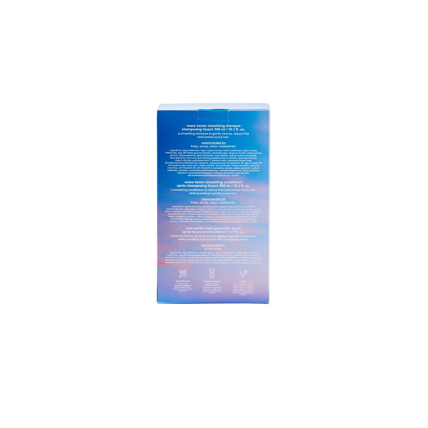 - gift set includes: 1 x "includes: 1 x gluttony volumizing shampoo 300ml 1 x bride of gluttony volumizing conditioner 300ml 1 x free root canal volumizing spray 300ml 1 x free limited edition, mark conlan tote bag" mane tamer smoothing shampoo 300ml 1 x mane tamer smoothing conditioner 300ml 1 x free icon welder heat protection spray 200ml