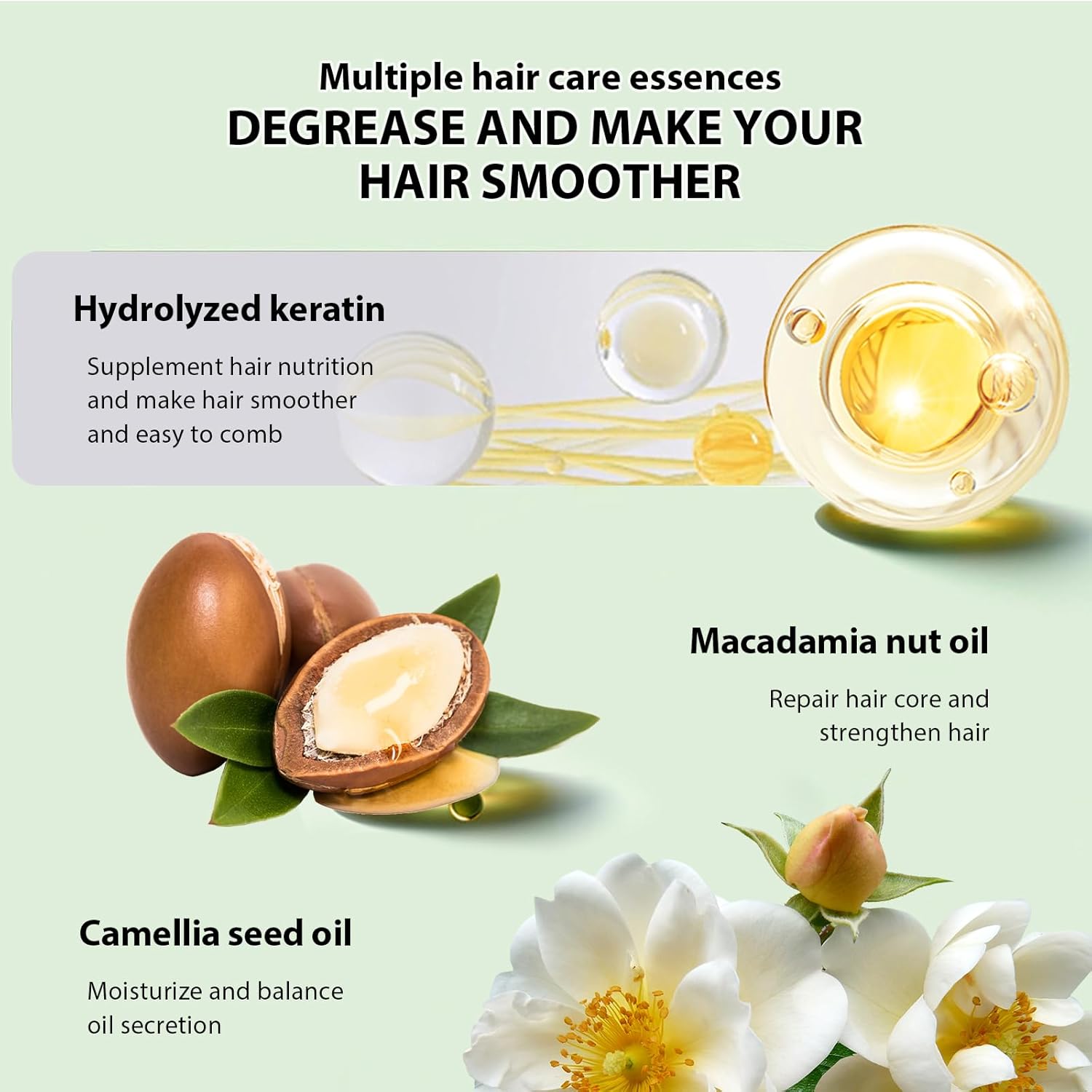 - Triple-Essence Formula for Oil Control & Smoothness: This organic dry shampoo enriched with hydrolyzed keratin, macadamia nut oil, and camellia seed oil. Hydrolyzed keratin smooths frizz and enhances silkiness; macadamia nut oil repairs damage and strengthens strands; camellia seed oil balances sebum production while hydrating hair. Controls oil while leaving hair moisturized, smooth, resilient, and full of texture.