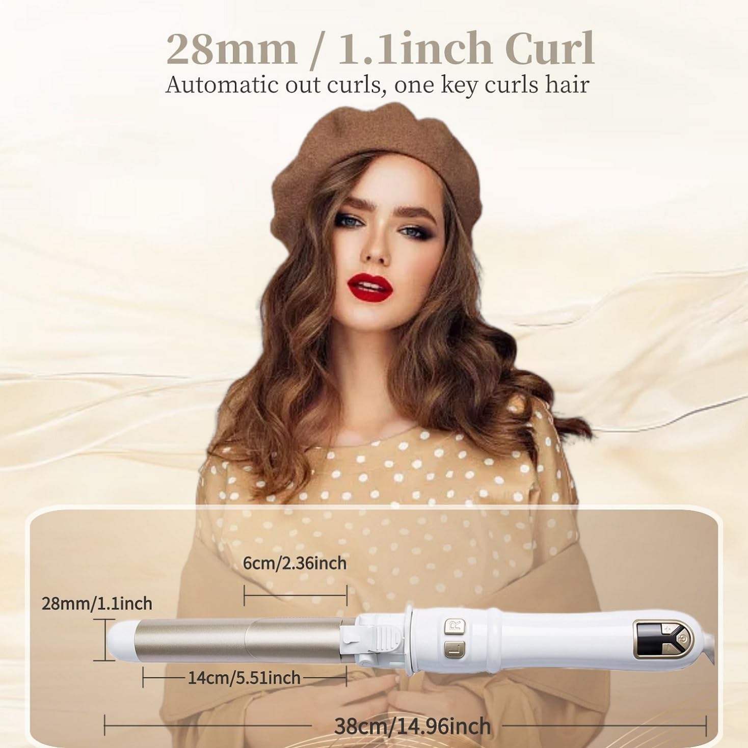 1.1 inch Automatic Curling Wand Rotating Curling Iron for Long Short Hair, Automatic Hair Curler with LED Display, Professional Hair Styling Irons Fast Heating