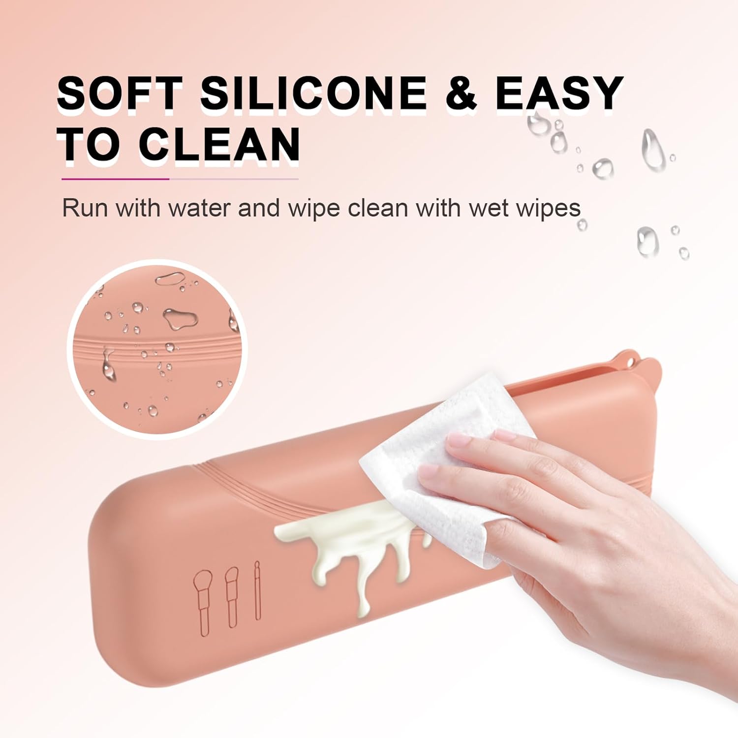 Silicone Makeup Brush holder,Large Travel Makeup Brush Case with Half-open Snap Design, Anti-fall Out Travel Bag,Portable and Eco-Friendly Beauty Cosmetic Organizer (Pink*1)