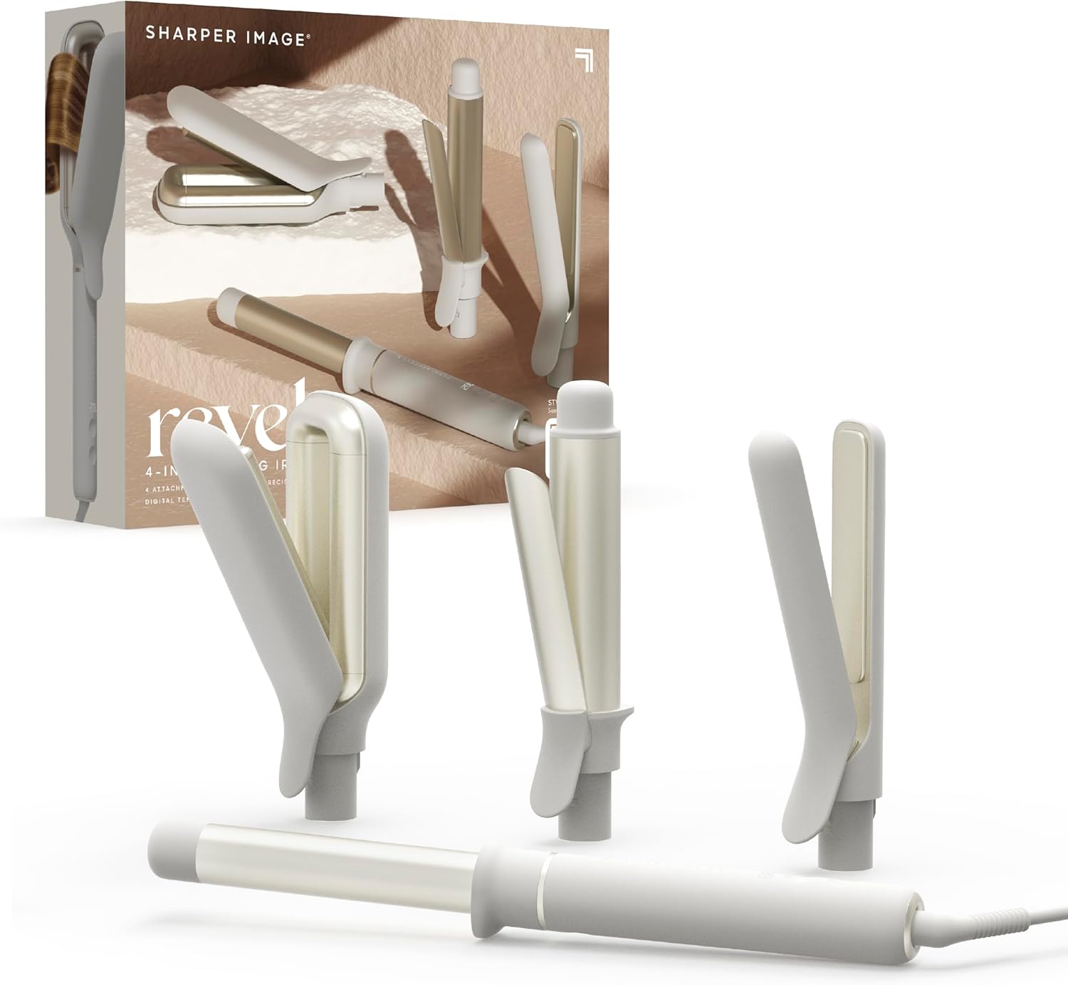 Sharper Image® Revel 4-In-1 Styling Iron |4 Attachments| Multi-Styler 1" Curling Wand, Wave Styler, Flat Iron| Adjustable Heat| Ceramic Tourmaline Technology|Hair Straightener & Curler| Gift for Women