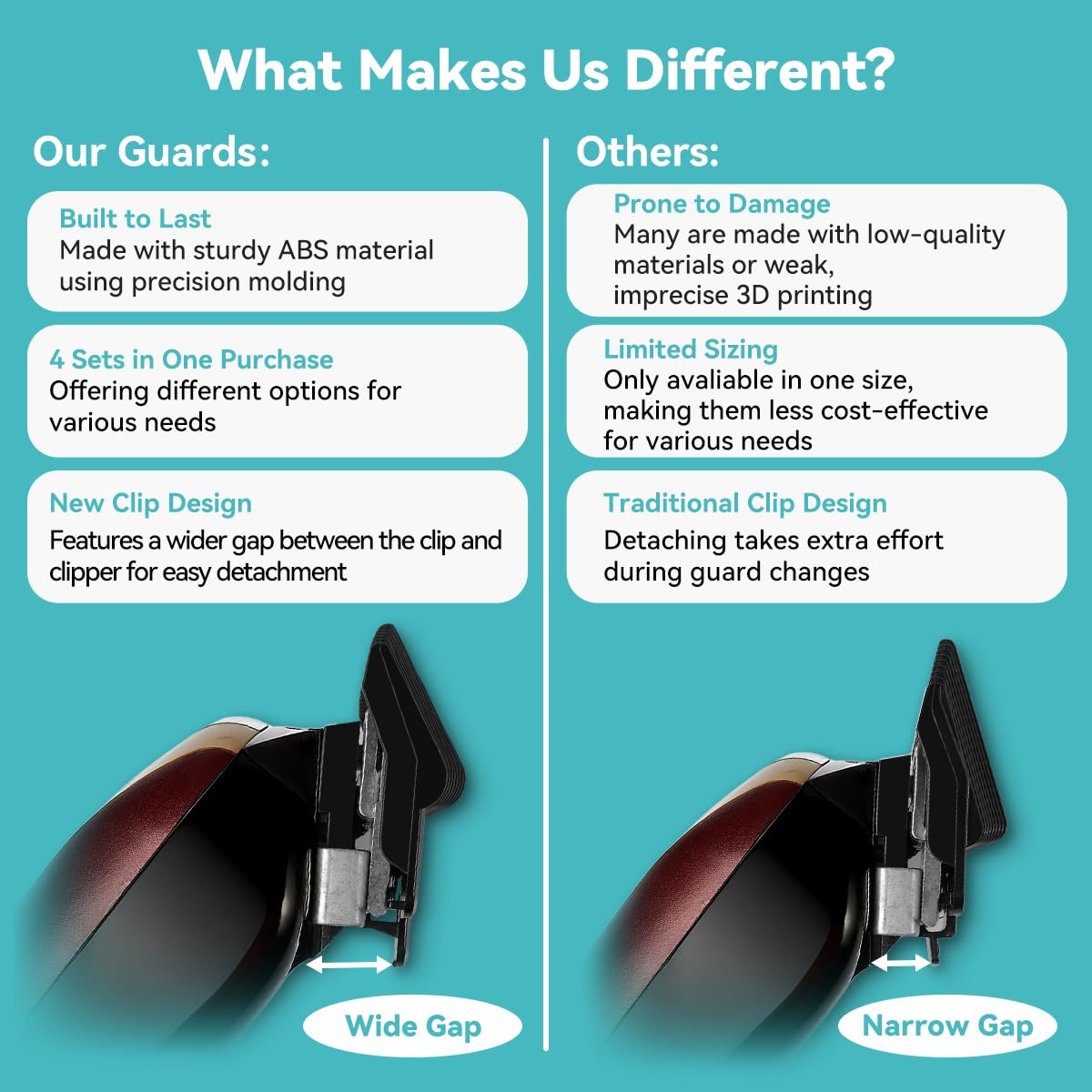 - Enhanced Clip Design: Features an innovative clip design with extended spacing between the guard and clipper for easier removal