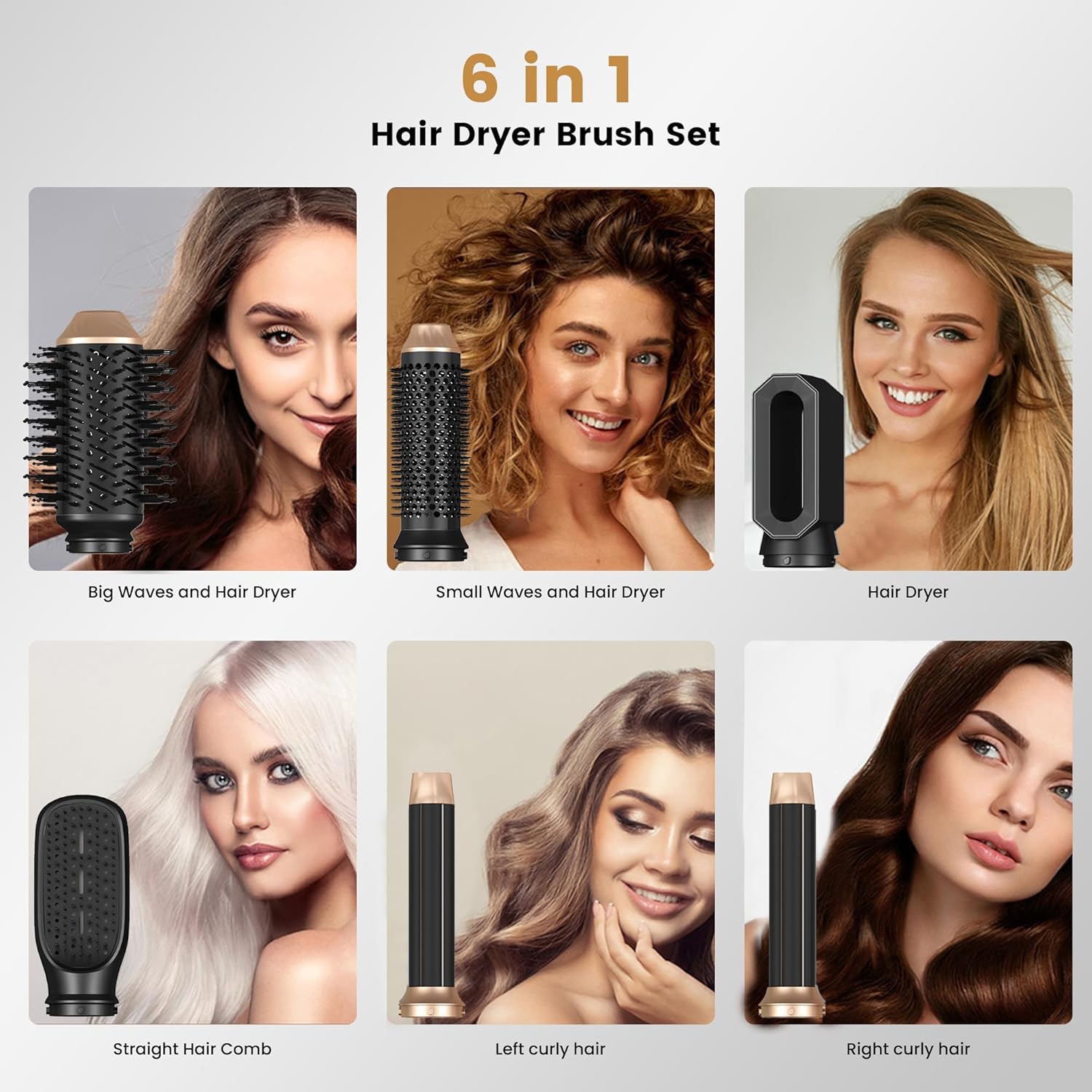 6 in ONE Hair Dryer Brush, Blow Dryer Curling Wand Hair Styling Tools Set, Ionic Hot Air Massage Oval Blowout Hair Dryer, Left&Right Hair Styler 100-120V