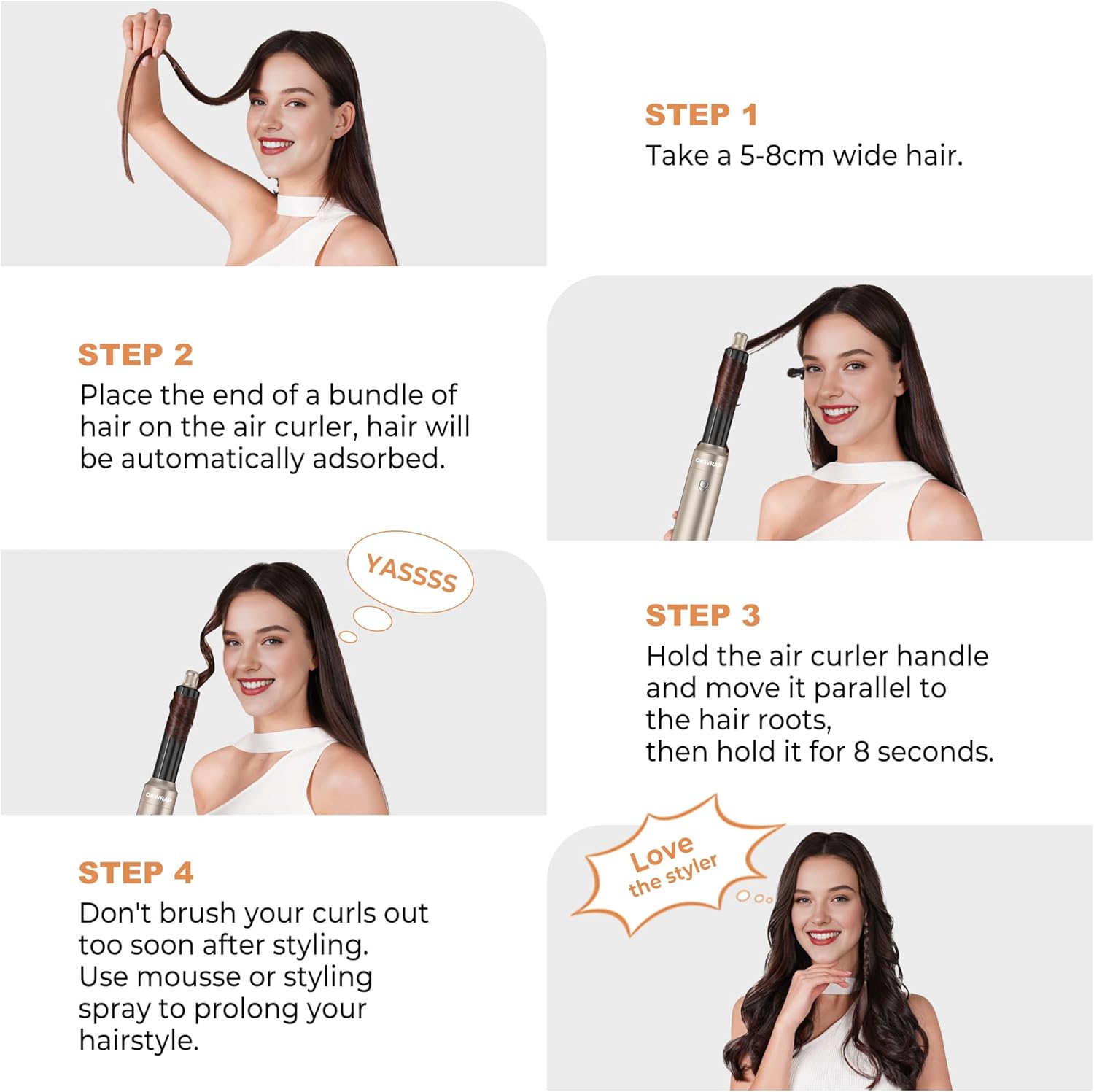 - 1.25” AUTO-WRAP CURLERS: Our blowout brush hair dryer features a FAST Brushless Motor and innovative air duct design, it generates powerful airflow and pressure from the air curler, harnesses the Coanda effect to create an air swirl around the curler, automatically adsorb, wraps, and curls hairs for voluminous, crate smooth, natural hairstyle. Includes 2 auto wrap hair wand to curl in different directions.