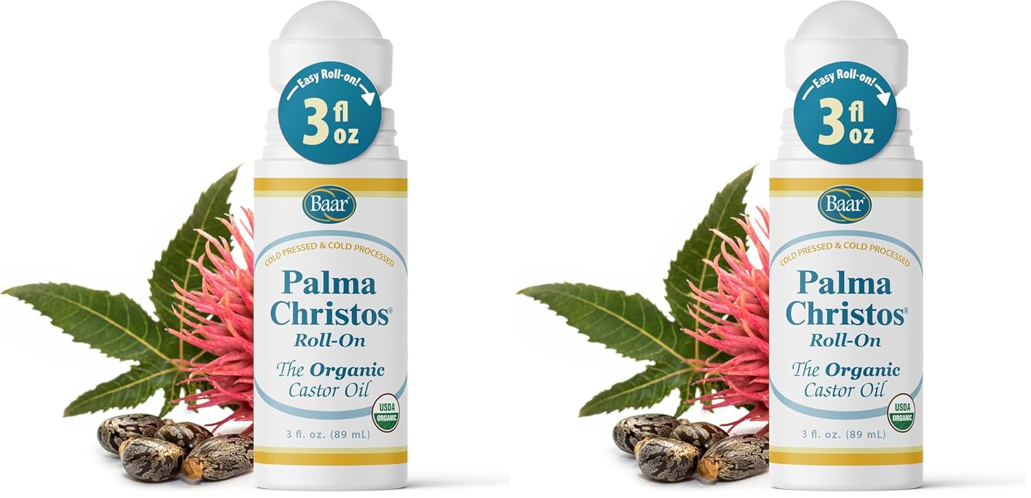 Baar Palma Christos Roll-On, Organic Castor Oil 3 oz (Pack of 2)