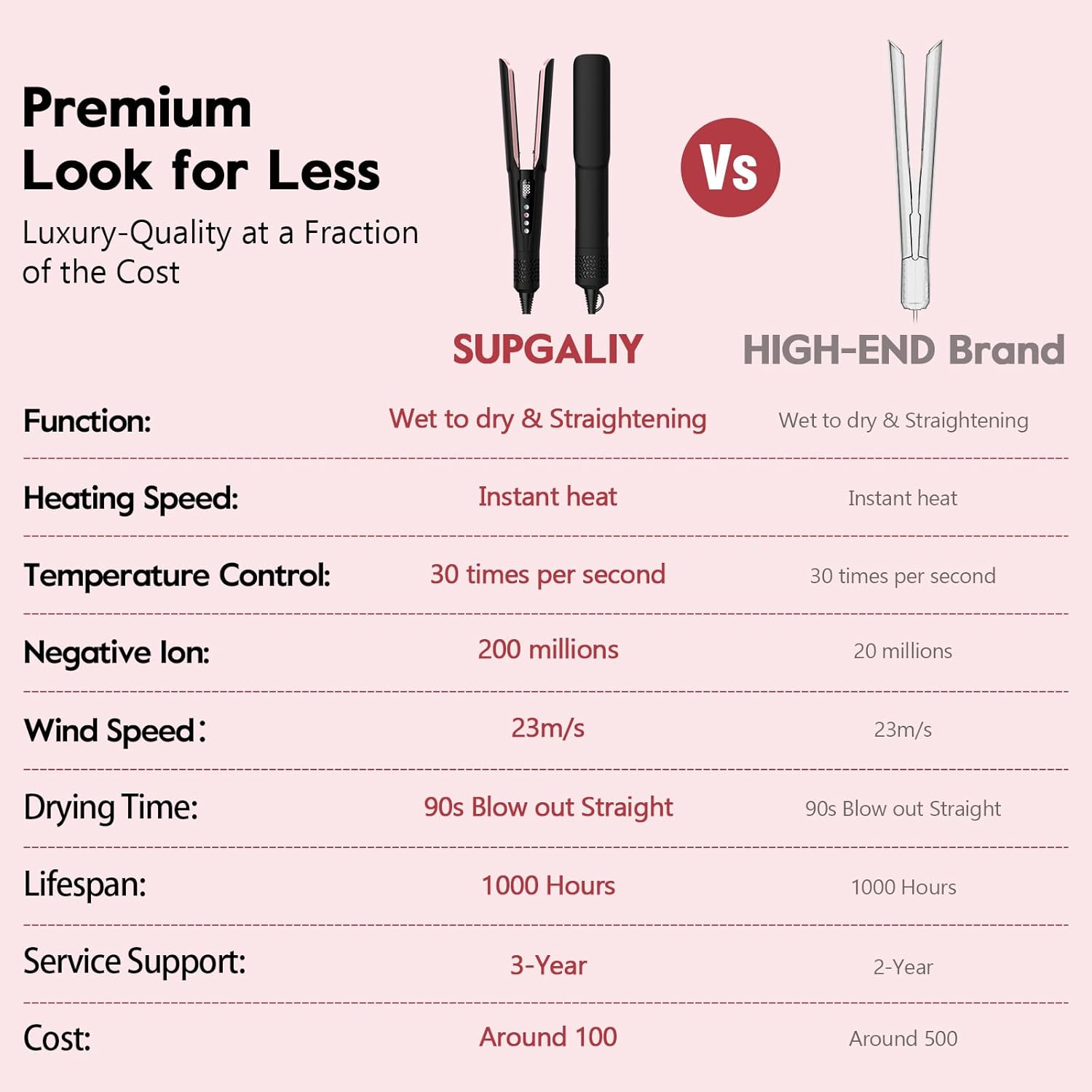 - Hair Straightener - 2 in 1 Wet to Dry Hair Dryer and Straightener with High-Speed Airflow + Rapid Heat-Up + Customizable Temperature + LCD Display & Auto Shut-Off + No Heat Damage