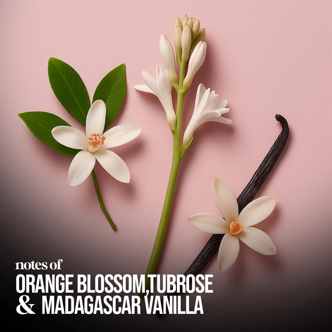 - π£π¨π₯π ππ₯πππ₯ππ‘ππ π§π¨πππ₯π’π¦π ππ¨ππππππ¨π :Experience the lively mix of Orange Blossom and Bitter Orange that brings freshness and brightness to your day. In the heart, Indian Tuberose adds soft floral sweetness that feels like bubblegum magic. The base of Madagascar Vanilla and Sandalwood wraps you in warmth, leaving a cozy, lasting scent.