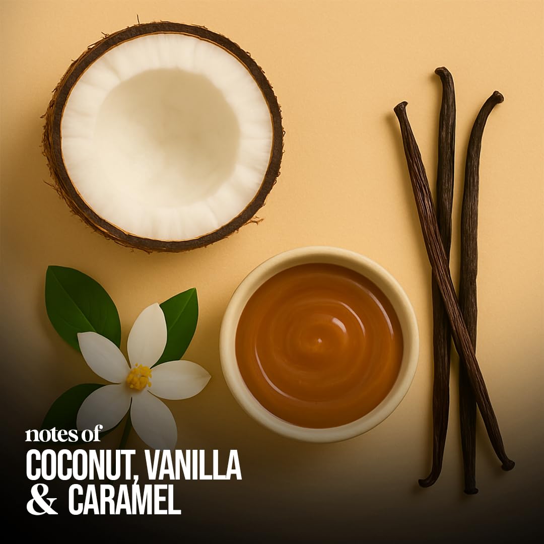 - π£π¨π₯π ππ₯πππ₯ππ‘ππ π©ππ‘ππππ πͺπππ₯:Experience the captivating blend of Coconut and Caramel that creates a creamy, sweet start. The heart blooms with Jasmine and Lily, adding a soft floral charm. The warm base of Sandalwood, Amber, and Musk gives a smooth, lasting finish that feels like a gentle hug.