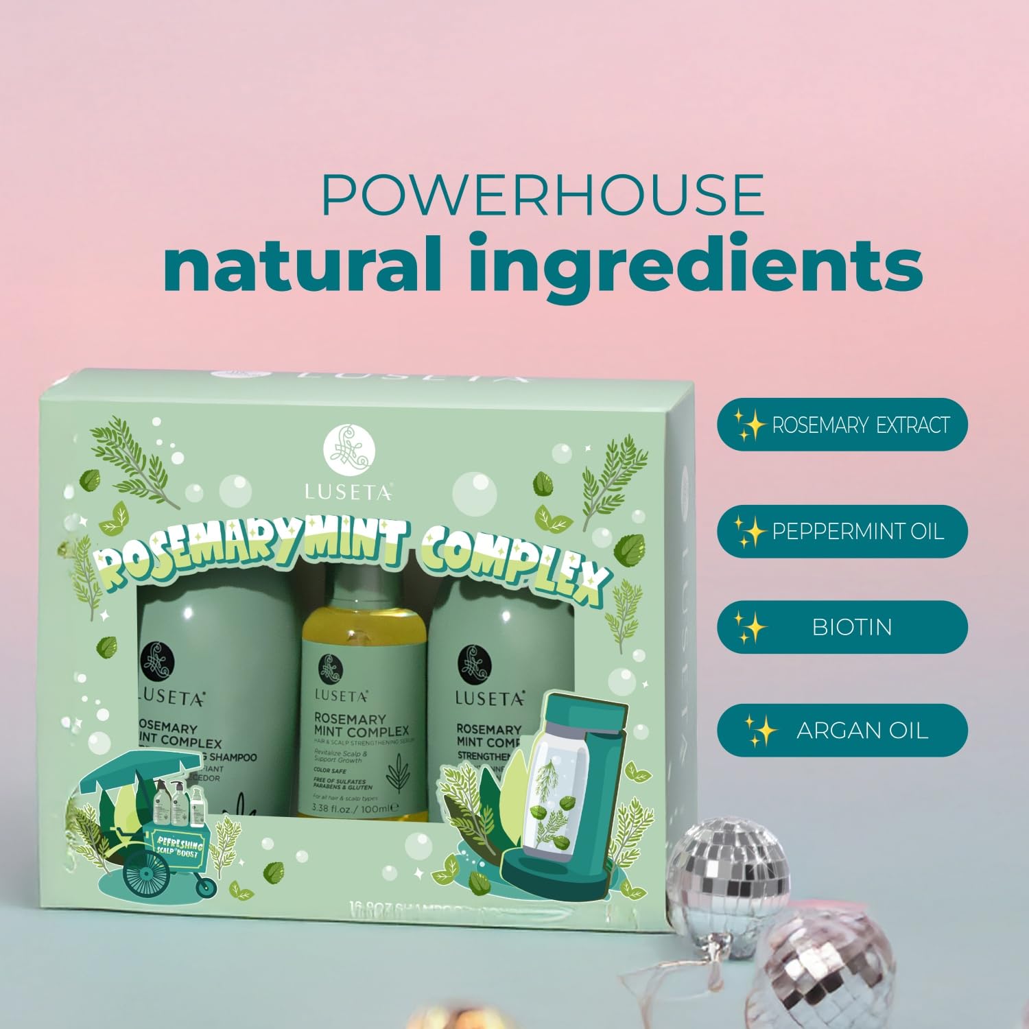 Luseta Rosemary Mint Shampoo and Conditioner 16.9oz and Hair Oil 3.38oz Trio Hair Care Set Nourishment & Smoothness for Thin Hair,Reduce Frizz and Add Shine